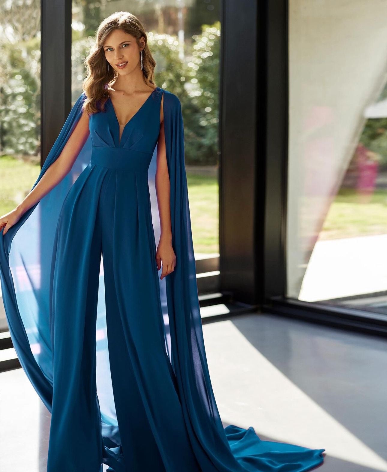 Experience the epitome of sophistication with Marfil Barcelona’s chiffon jumpsuit, featuring ethereal mousseline capes. This stunning gown gracefully combines classic elegance with modern flair, ensuring you make a memorable entrance at any event. The luxurious chiffon fabric flatters your silhouette, while the flowing mousseline capes add a touch of whimsical charm, creating a timeless look that's both enchanting and refined. Perfect for gala nights, weddings, and special occasions, this dress is designed for the woman who desires to feel effortlessly chic and captivating.