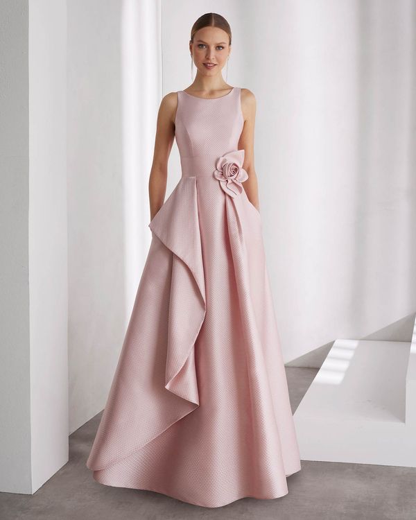 Expertly crafted from luxurious satin, the 9TD1 evening dress exudes elegance and sophistication. The bateau neckline and open back add a touch of allure, while the stunning print elevates the Rosa Clará Cocktail look. Perfect for formal occasions, this dress is both fashionable and comfortable.