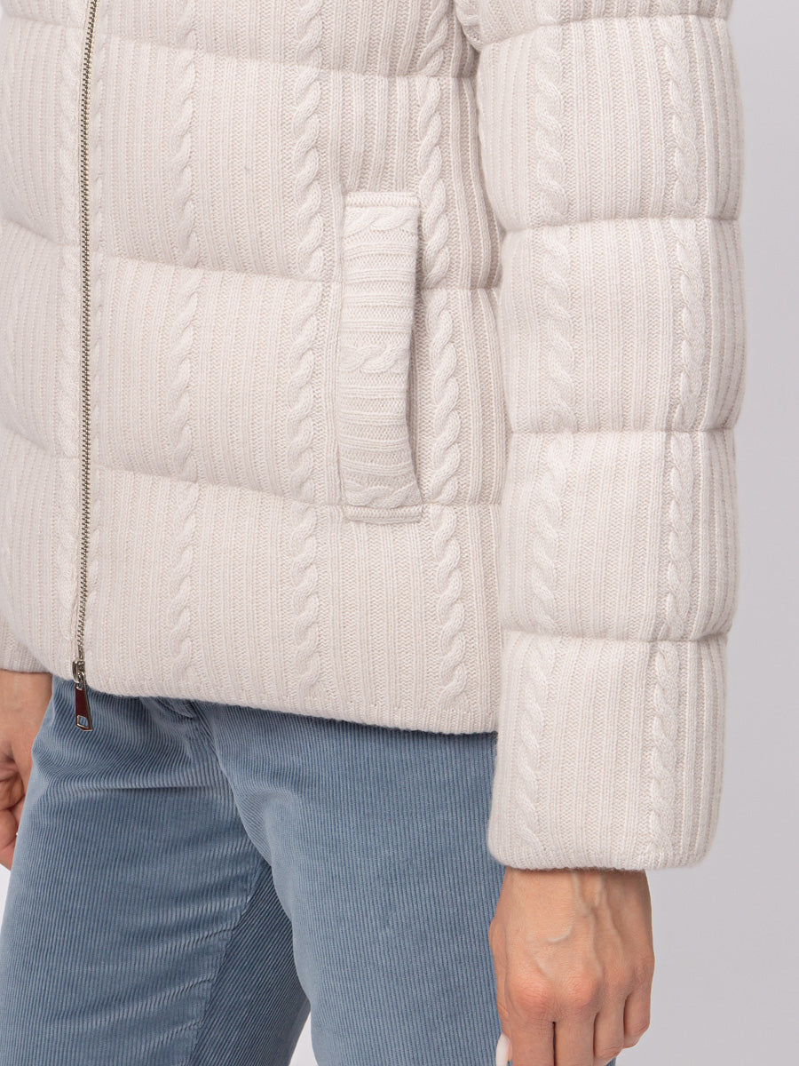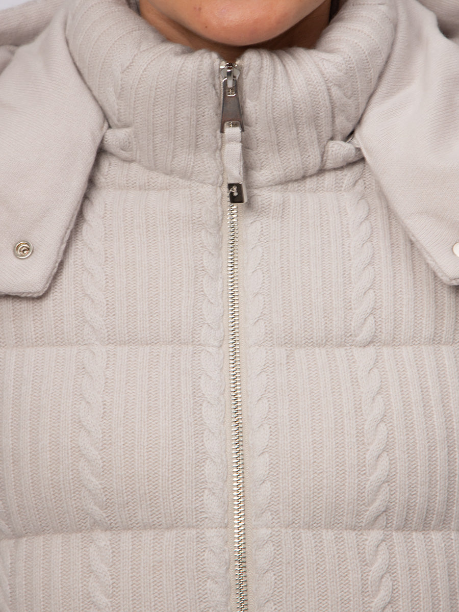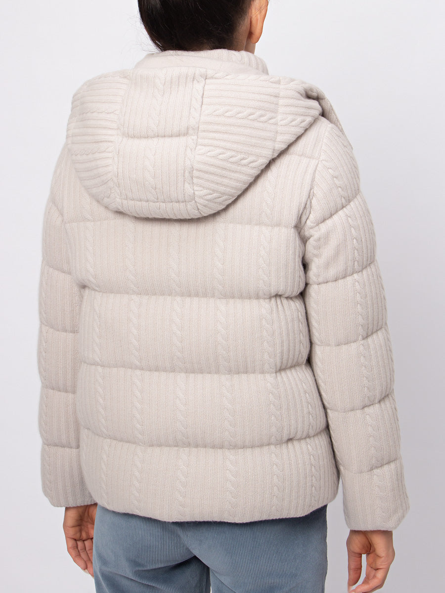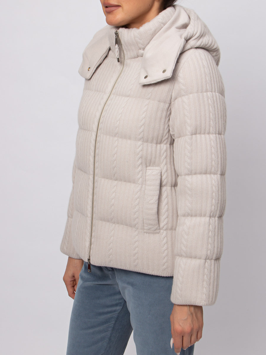 Cashmere Padded Jacket with a hood.