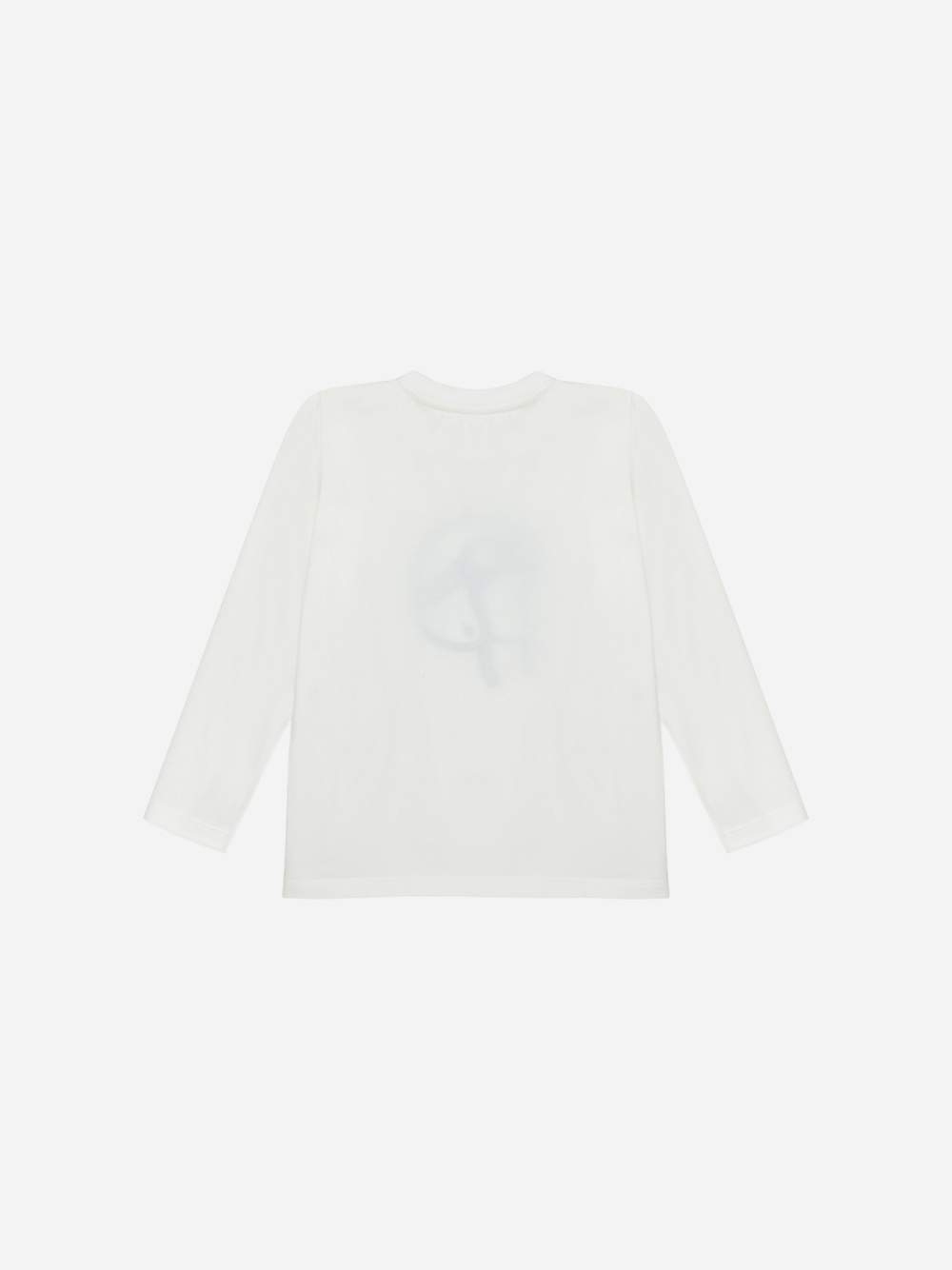 This soft ecru long-sleeved top is made from comfortable jersey. It features a fun appliqué of a vintage-style helmet in checks pattern on the chest. Convenient button closures at the shoulder make dressing easy.