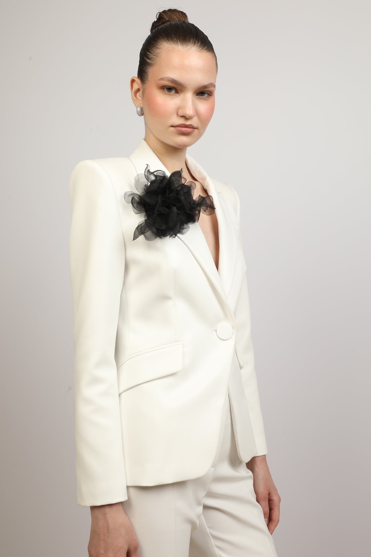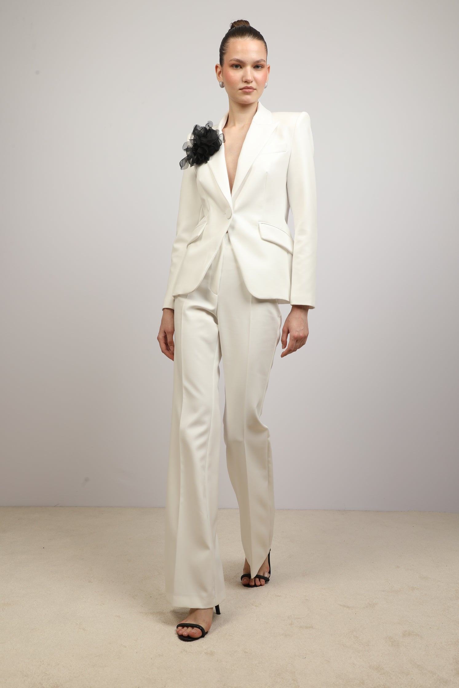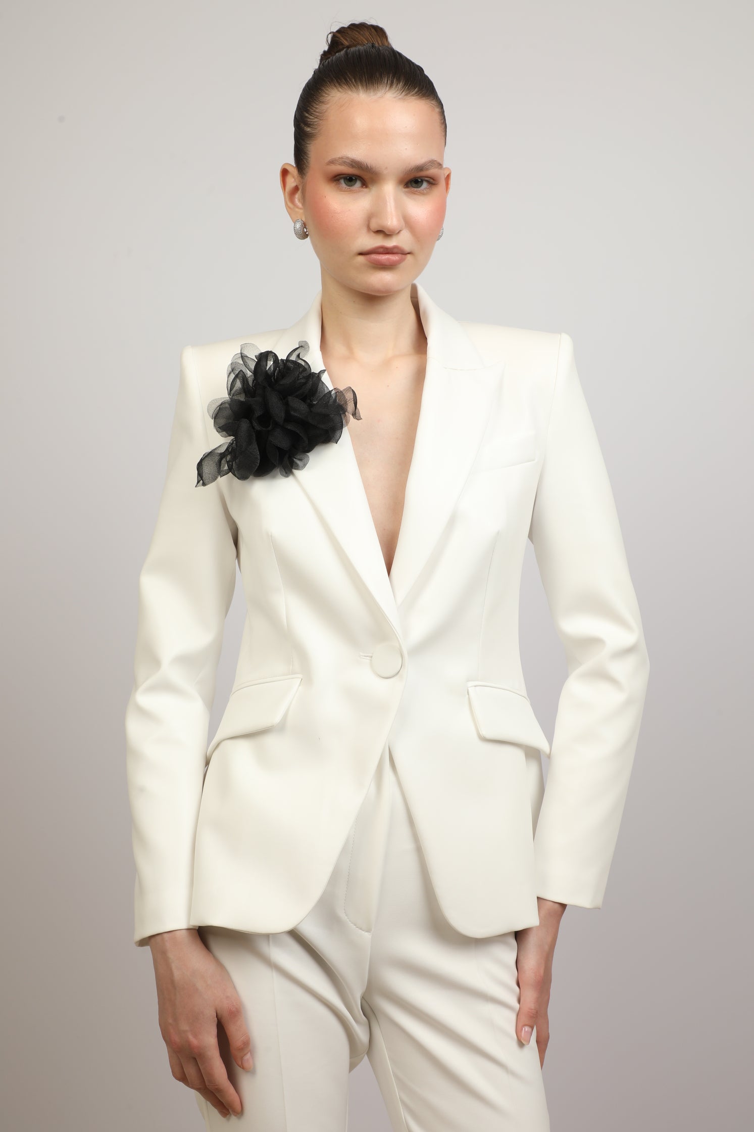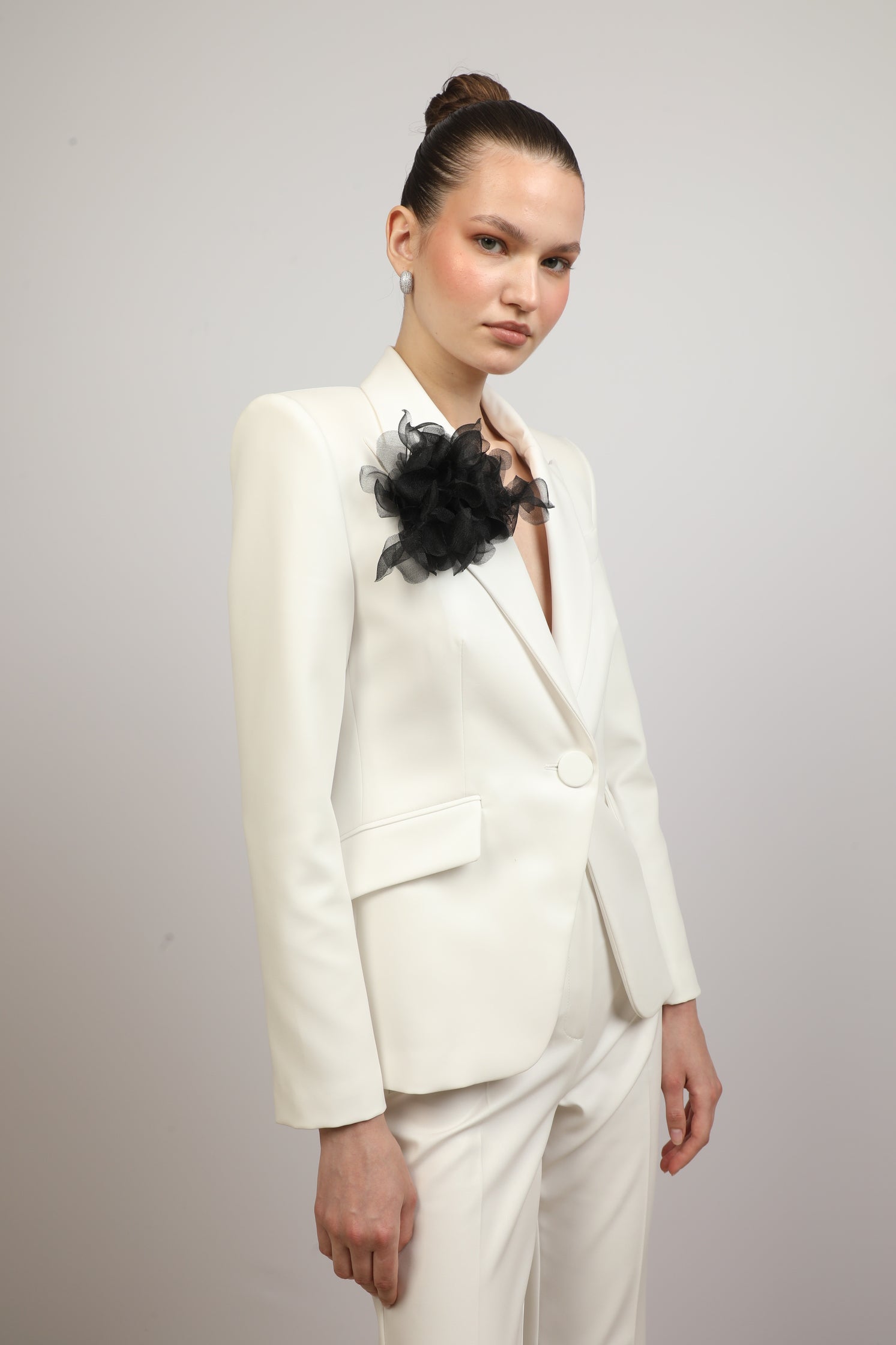 Sleek Suit with Floral Accent