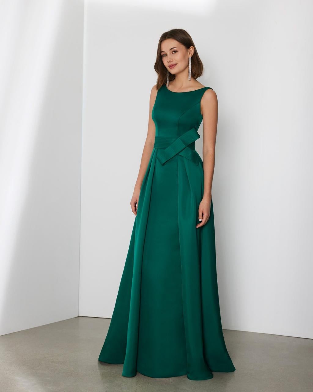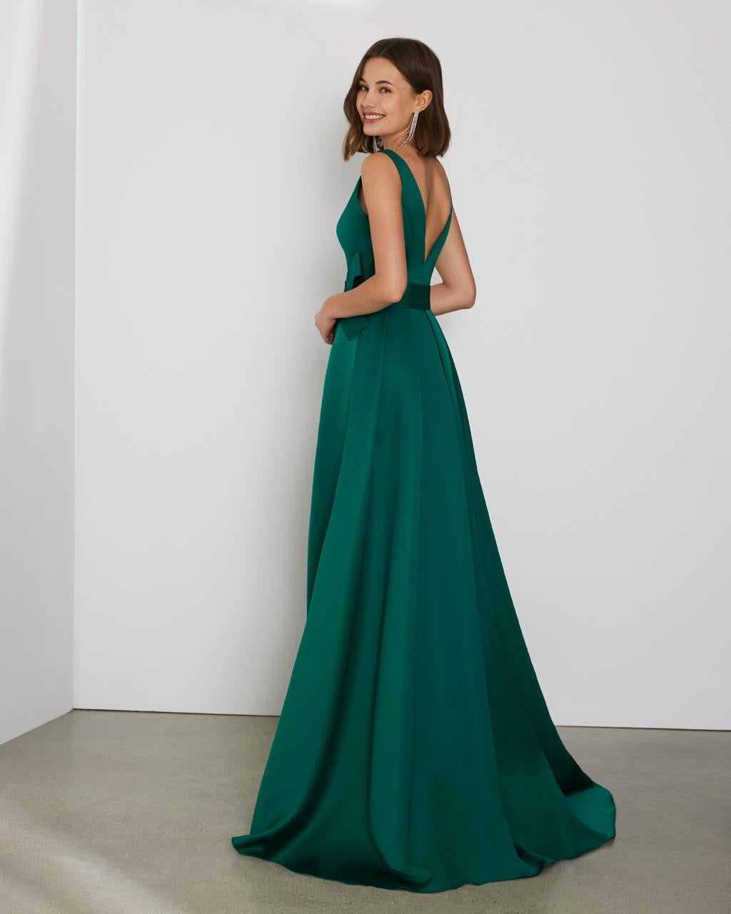 This exquisite evening gown by Rosa Clara Cocktail is crafted from luxurious duchess satin, exuding elegance and sophistication. The gown features a timeless silhouette that gracefully accentuates the figure, with meticulous tailoring and attention to detail. Its classic design is complemented by subtle yet striking embellishments, making it a perfect choice for any formal occasion. Experience the ultimate blend of style and refinement in this stunning piece, designed to make you feel like royalty.