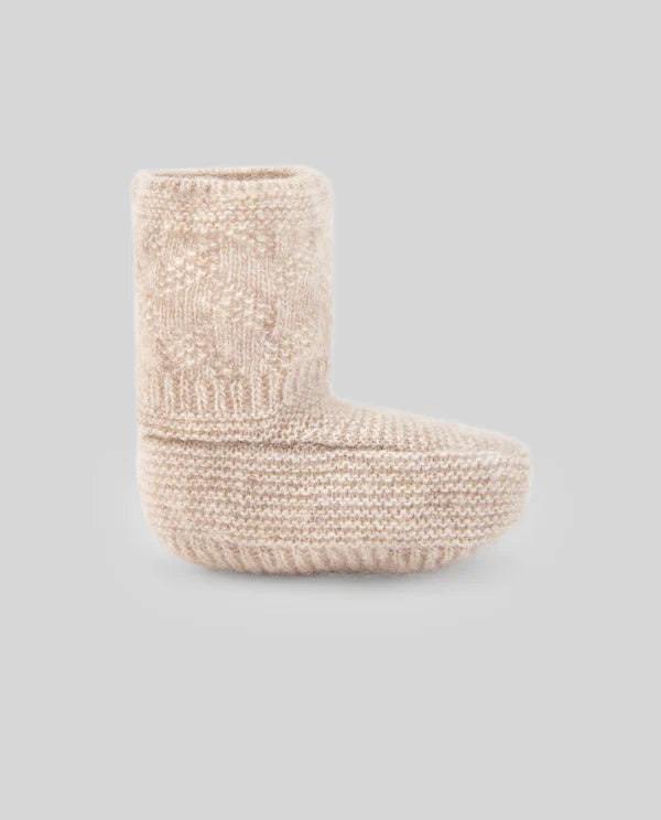 Booties in wool and cashmere knit with a herringbone texture. Refined design with elegant texture and a snug fit.