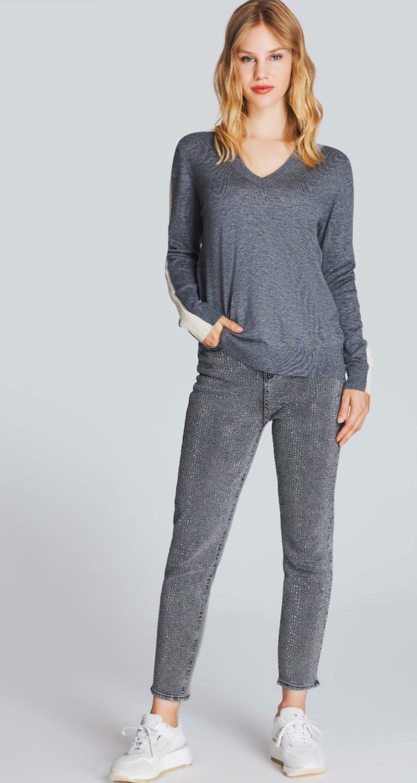 Elevate your wardrobe with this chic knitwear piece, featuring bold arm stripe detailing for a modern edge. Crafted from premium, soft-touch fabric, this sweater combines warmth and style effortlessly. The striking stripe design adds a dynamic contrast, making it a standout staple for casual and smart-casual looks alike.
