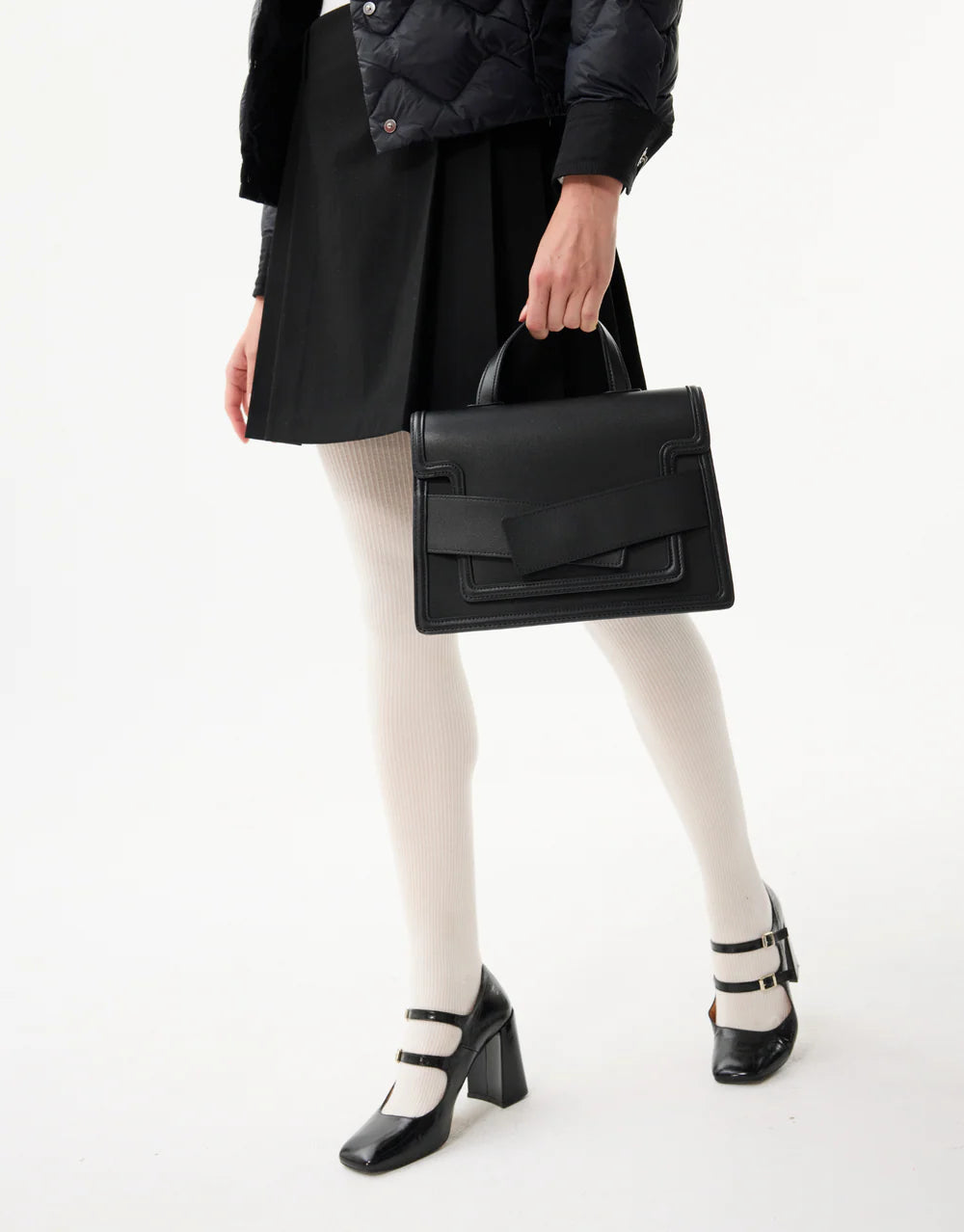 Made from 100% premium leather, it comes in several timeless colors – black, navy, ecru, pink, and sky blue – to suit all styles. Thanks to its two interchangeable leather handles, you can carry it as you wish: by hand for a chic look or crossbody for more practicality.