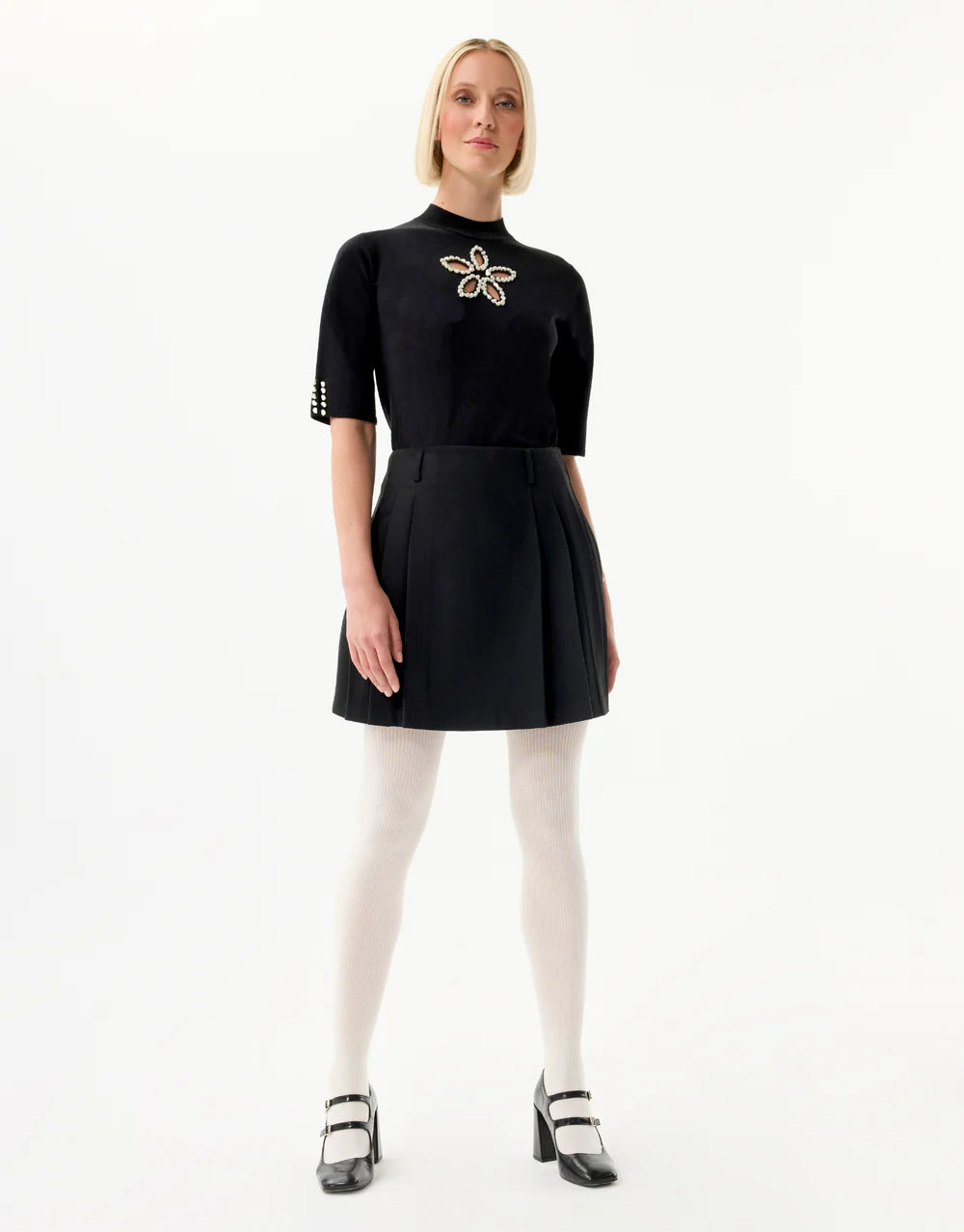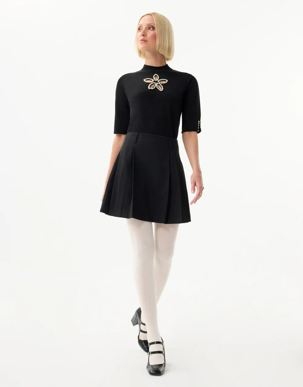 Add a chic and sophisticated touch to your outfits with this LORELEI sweater in knit adorned with an elegant pearl flower on the bust. Its refined design, combined with short sleeves and a straight cut, makes it an easy piece to wear daily or for a special occasion. Delicate and modern, this women's sweater combines comfort and femininity.