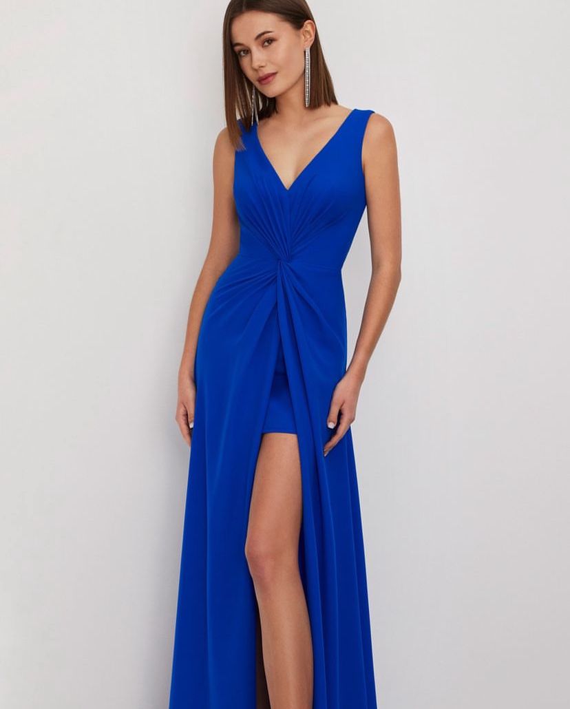 Unveil your inner sophistication with the Rosa Clara Cocktail Royal Blue Evening Gown. This breathtaking dress combines timeless elegance with modern flair, featuring a rich blue hue that exudes refinement. The expertly tailored silhouette flatters the figure, while intricate details and luxurious fabric ensure a captivating presence. Perfect for any formal event, this gown promises to make you the epitome of grace and style.