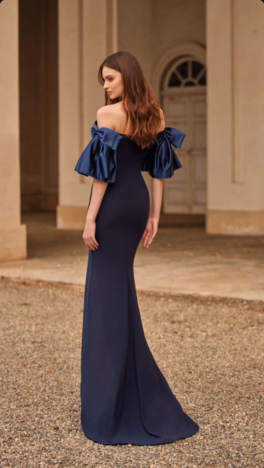 Step into the spotlight with the Nicole Milano Elegant Evening Gown, a masterpiece of sophistication and style. Crafted from the finest crepe georgette, this gown exudes an air of timeless elegance and luxury. The intricate satin sleeves detailing adds a touch of romantic allure, making it the perfect choice for any formal occasion.