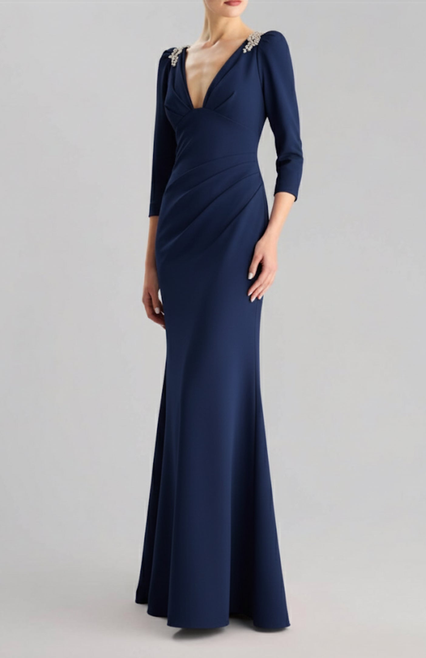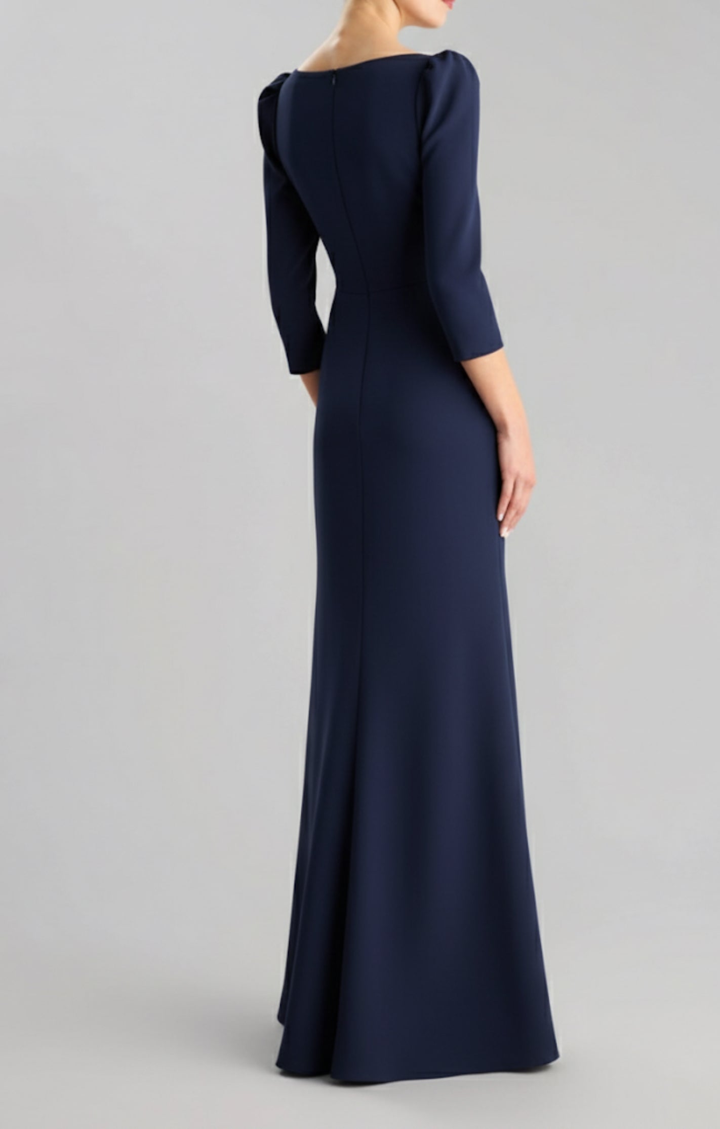 Step into sophistication with this Pronovias fit and flare dress , designed with chic 3/4 sleeves . The tailored silhouette highlights your figure , offering a blend of classic elegance and modern style , ideal for any special event or celebration .