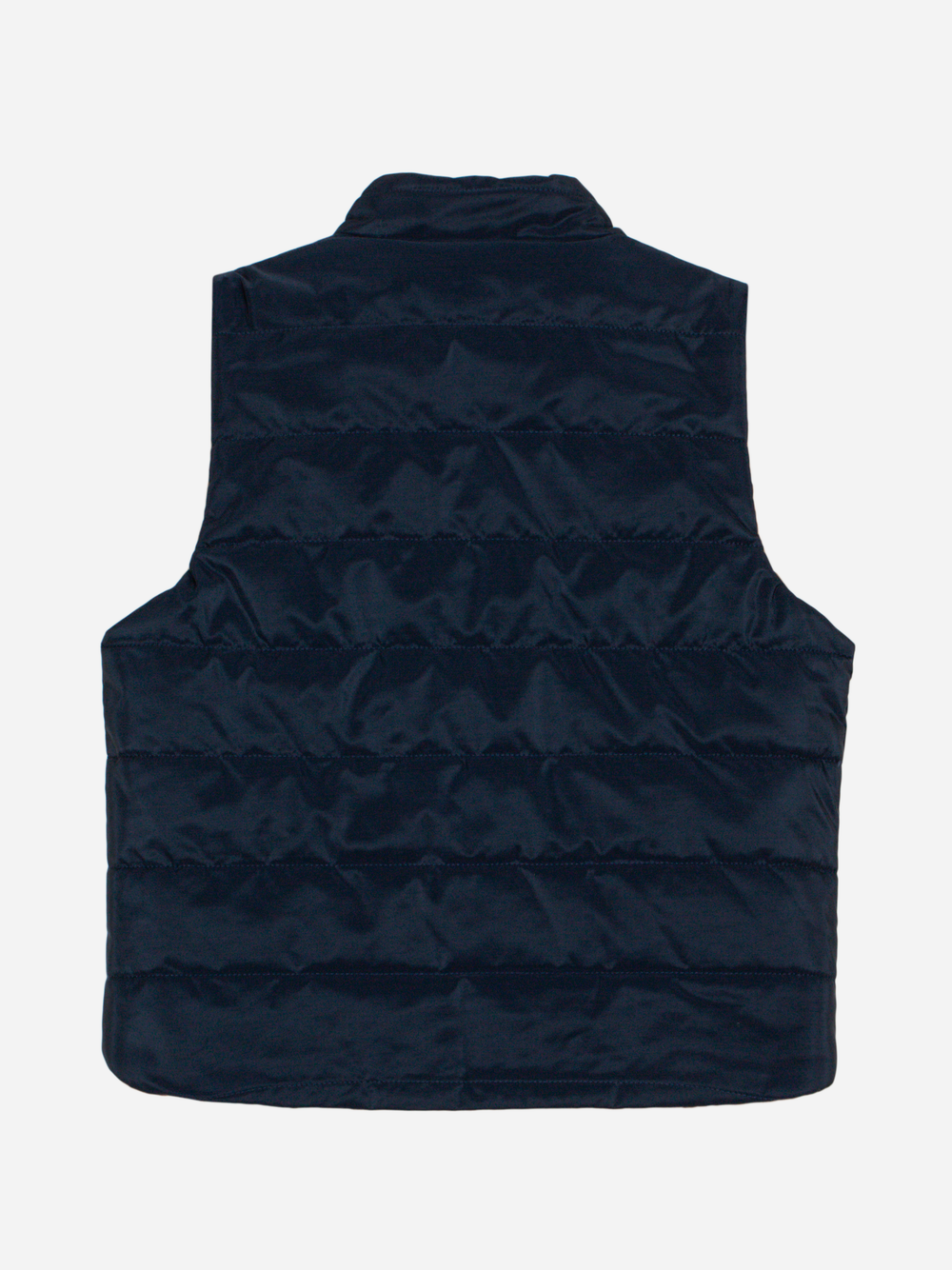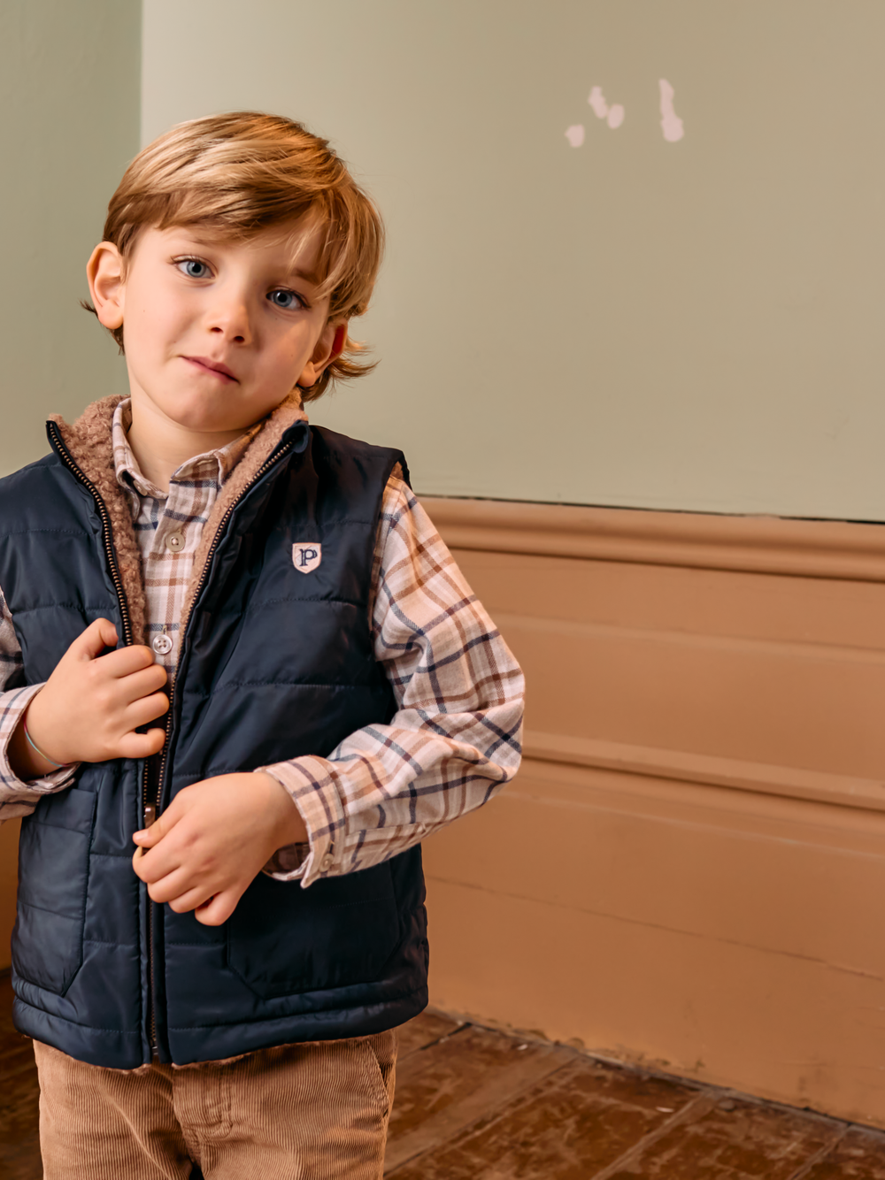 This versatile marine vest is crafted from smooth microfiber on one side and reverses to a cosy brown fur. It features a stand-up collar, a zip-up front, and practical pockets on both sides, offering two stylish looks in one warm and comfortable garment.