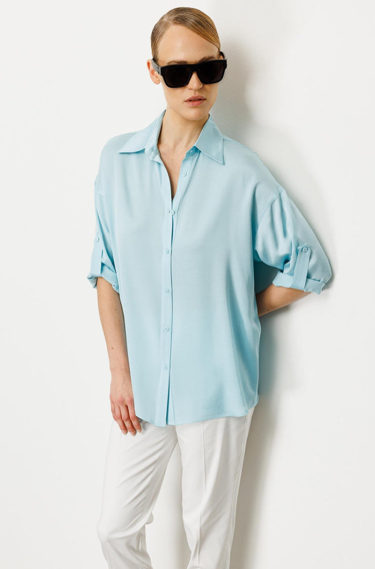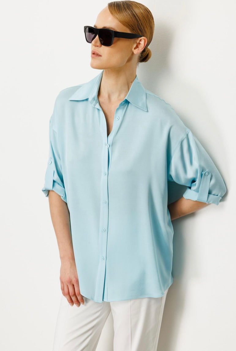 Introducing our half sleeve epaulette blouse , a stylish fusion of structure and softness . This blouse features half sleeves with chic epaulette detailing on the shoulders , adding a touch of military-inspired sophistication to your look . Crafted from lightweight , breathable fabric , it ensures comfort while maintaining a polished appearance . Perfect for both office wear and casual outings , this versatile piece effortlessly elevates any outfit .