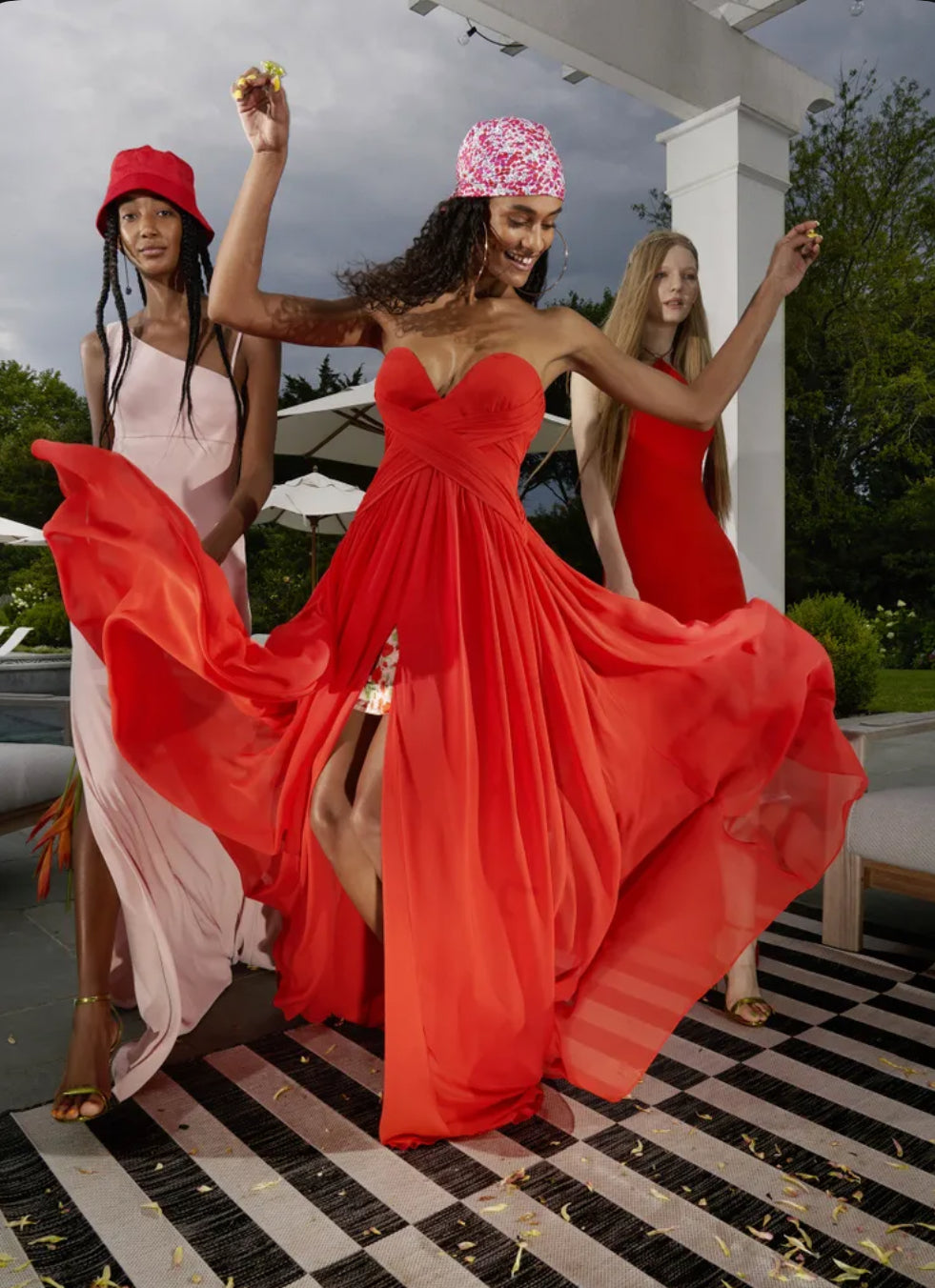 Step into elegance with Vera Wang's Enchanting Chiffon Evening Gown . Crafted from flowing chiffon , this gown offers a graceful drape and ethereal movement . The design features a refined silhouette with delicate details and a flattering fit , perfect for making a memorable statement at any formal event . Embrace the beauty of effortless sophistication with this exquisite piece .