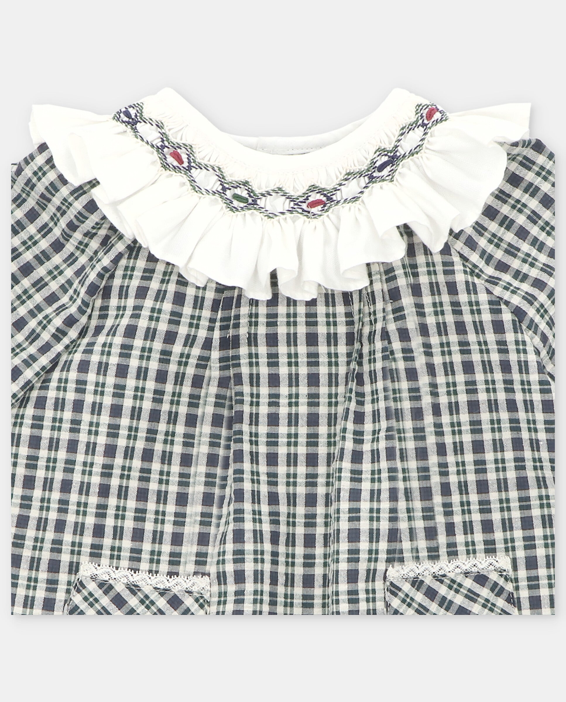 Woven checkered dress & nappy set